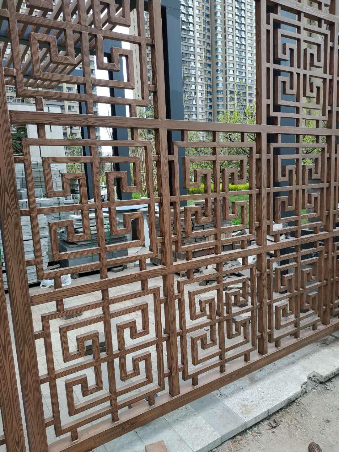 窗花造型鋼構(gòu)安裝工藝,根據(jù)設(shè)計(jì)師的要求整體每一條木紋漆紋路都改成豎紋,不經(jīng)意間的紋路更能體現(xiàn)仿木的真實(shí)性。