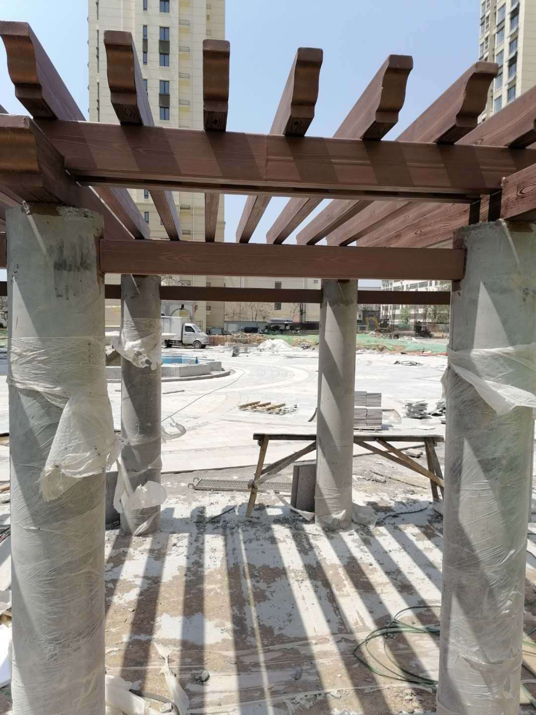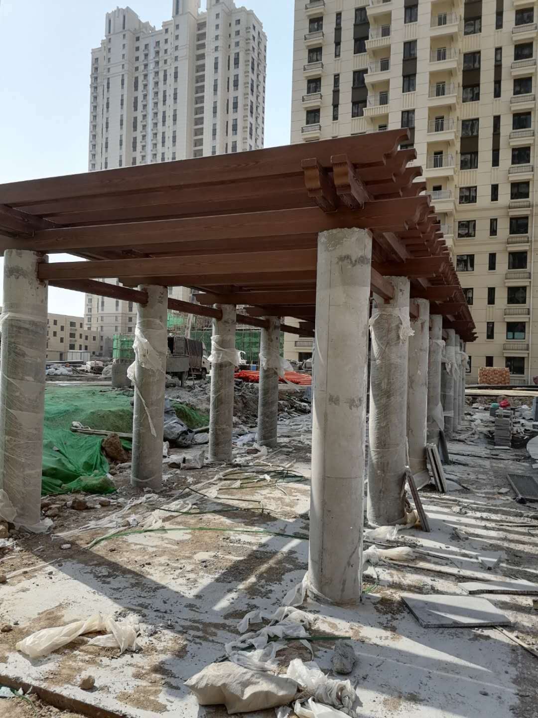 山東德州金球華地廣場樓盤下集聚多棟樓宇與大量商鋪,其中樓區(qū)綠化中選擇的護(hù)欄搭建及休息區(qū)廊亭的裝飾材料,都是環(huán)保水性木紋漆,耐用又美觀,廊架焊接好以后涂刷上木紋漆,與實(shí)木的逼真效果高達(dá)99.9%。
