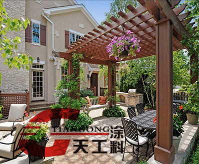 廊架木紋漆施工效果多見于:公園廊架涼亭,市政建設,別墅,生態(tài)園林建設等。