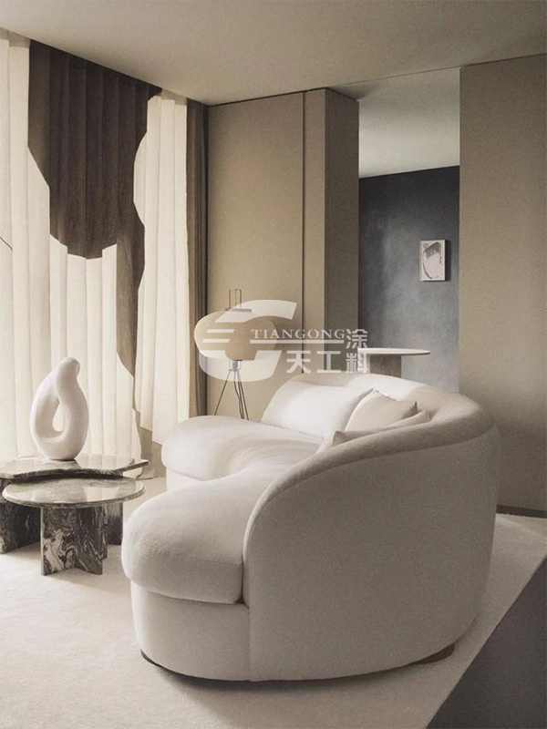 2.砂漿顆粒系列:用灰刀直接將顆粒質感涂抹在墻上,或者用光塑滾筒直接滾動到墻上,然后將其壓平,干燥后,可使用金屬漆或乳膠漆,涂上透明防塵漆效果更好。