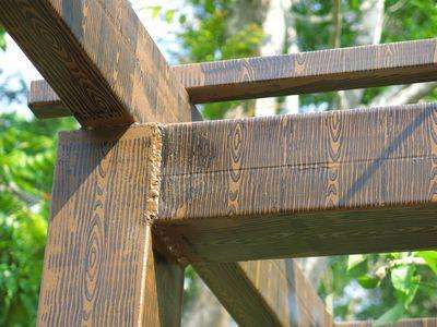 4、做仿木紋漆用水性漆 做出木紋效果的鋼管表面刷一遍木紋面漆。