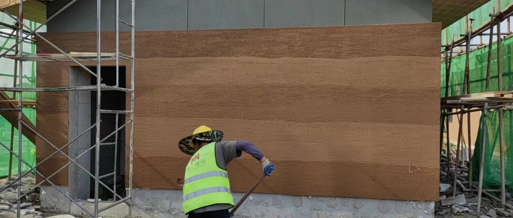 夯土涂料是一種以裝飾保護為主要功能的水性藝術涂料,采用特殊工藝制作而成,對于一些想節(jié)省時間和精力的人來說,為了簡單和方便,他們會選擇直接在水泥墻上批刮夯土涂料來制作夯土墻,那這種做法到底是怎樣的呢?